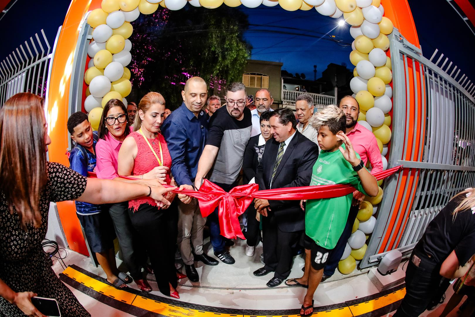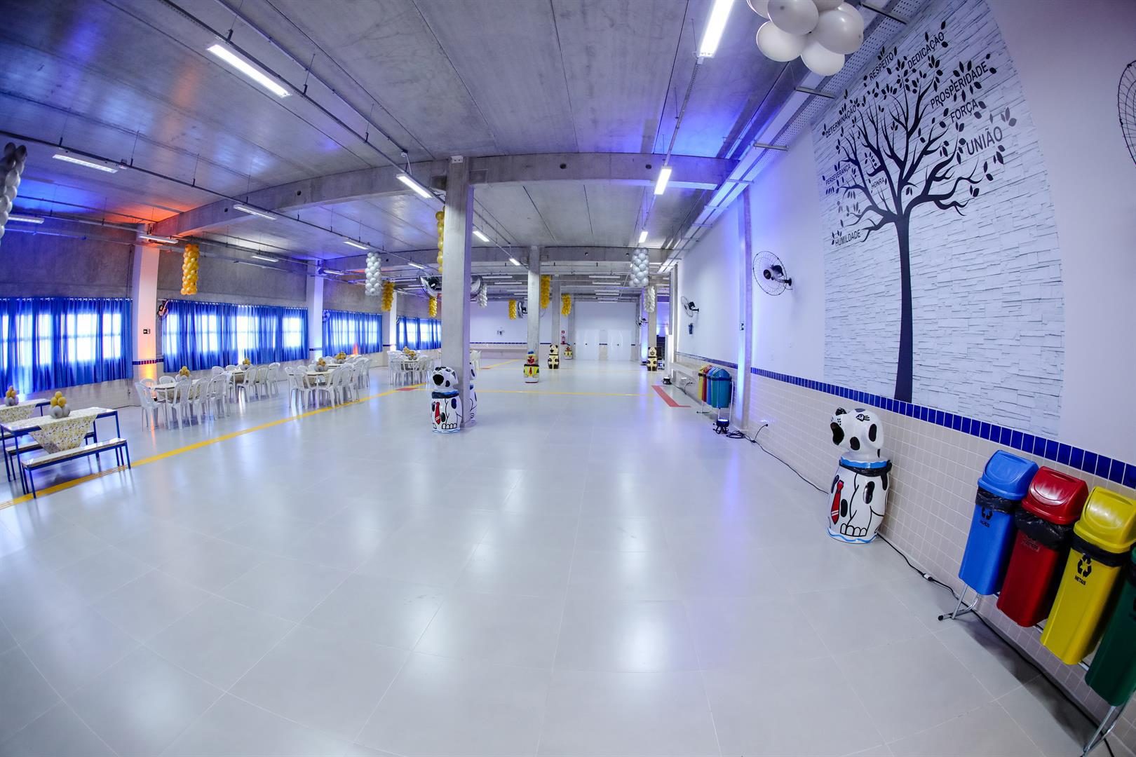 Escola de tempo integral recebe nome da Professora Carla Aparecida Gemmi Ribeiro, que prestou grandes serviços à educação parnaibana; unidade tem 6,3 mil metros quadrados e está integrada ao complexo esportivo do bairro.