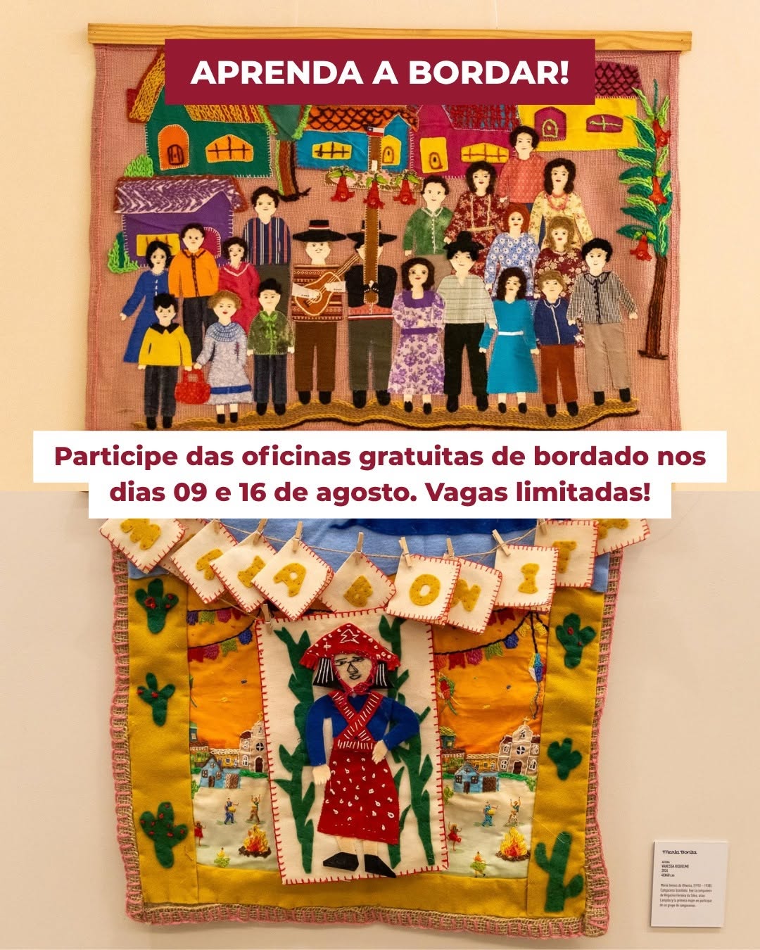 ✂️ Oficinas de bordado gratuitas durante o período da mostra