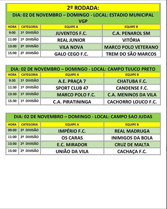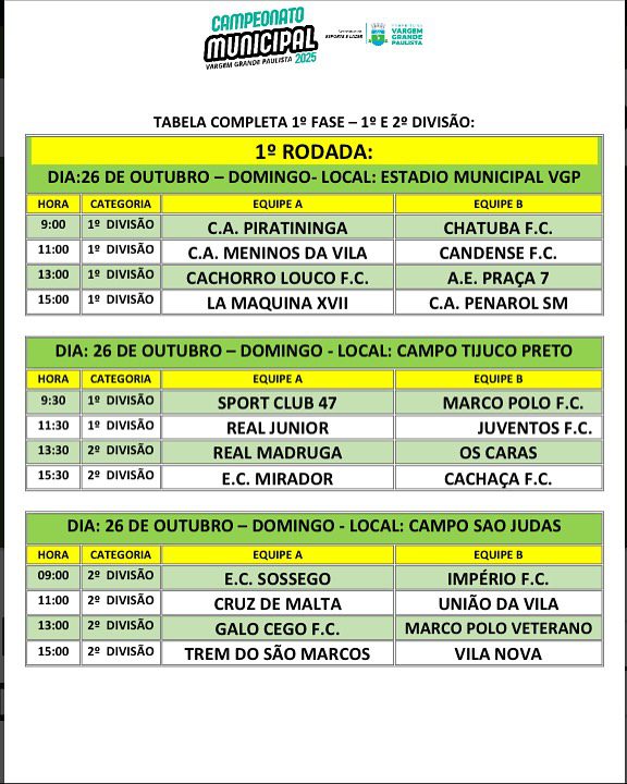 Os jogos da primeira rodada prometem muita emoção e gols. A tabela completa está disponível no site oficial: vargemgrandepaulista.sp.gov.br