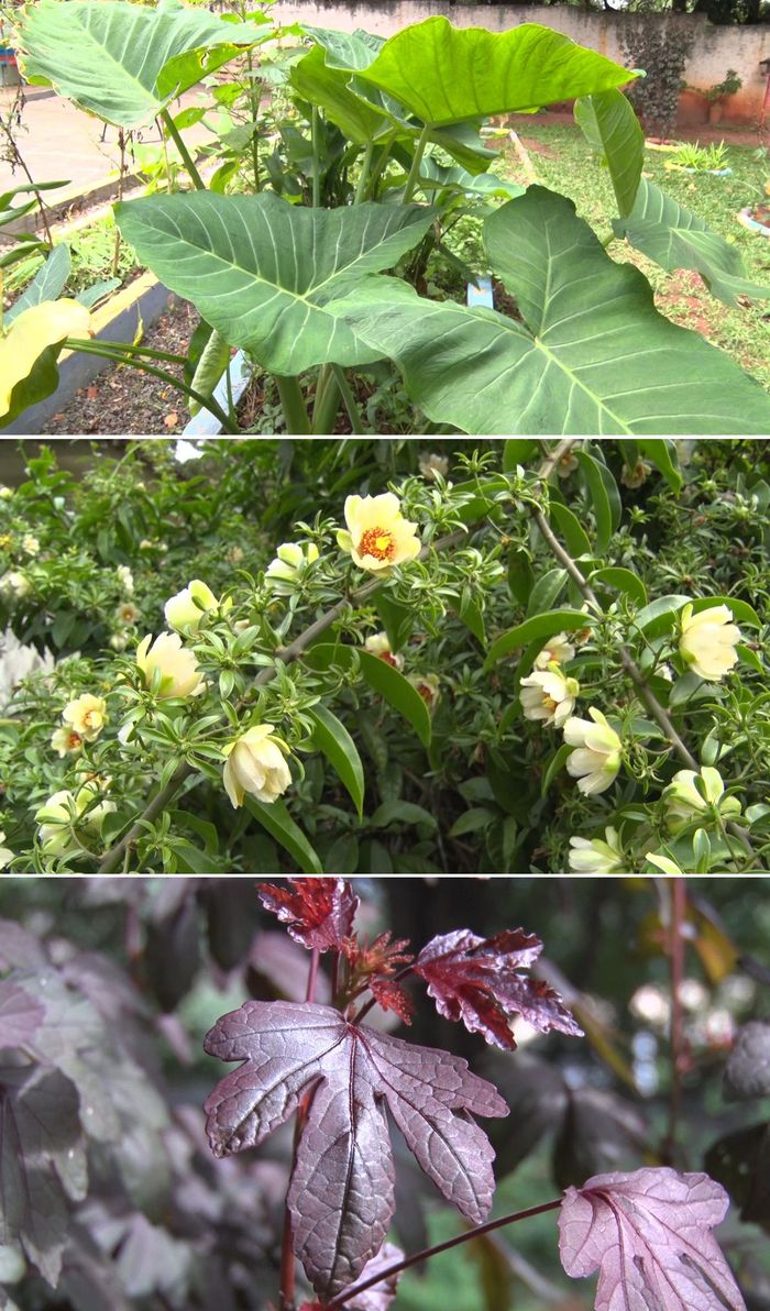 Na sequência, fotos de taioba, ora-pro-nóbis e hibisco-roxo