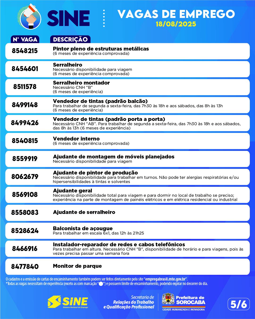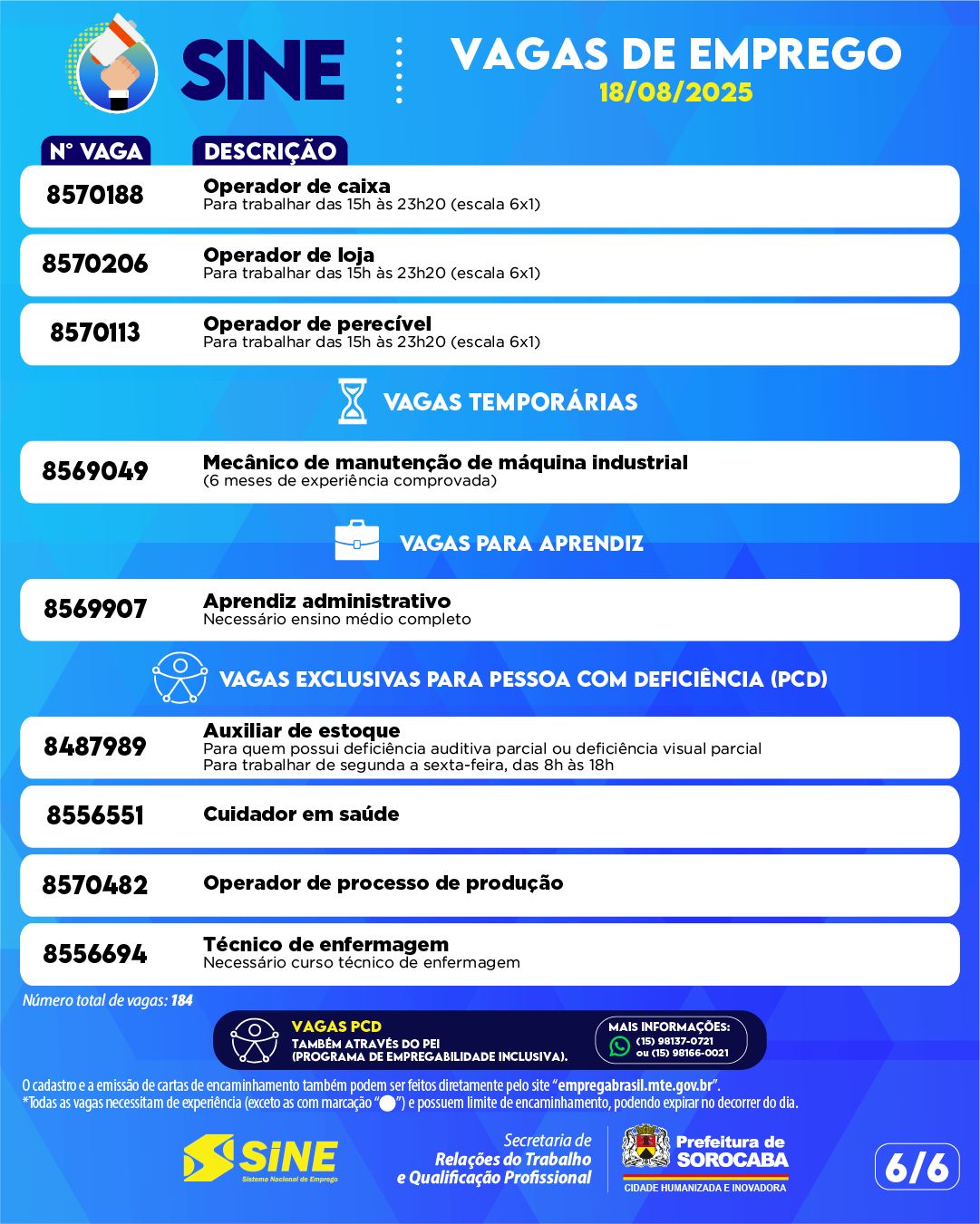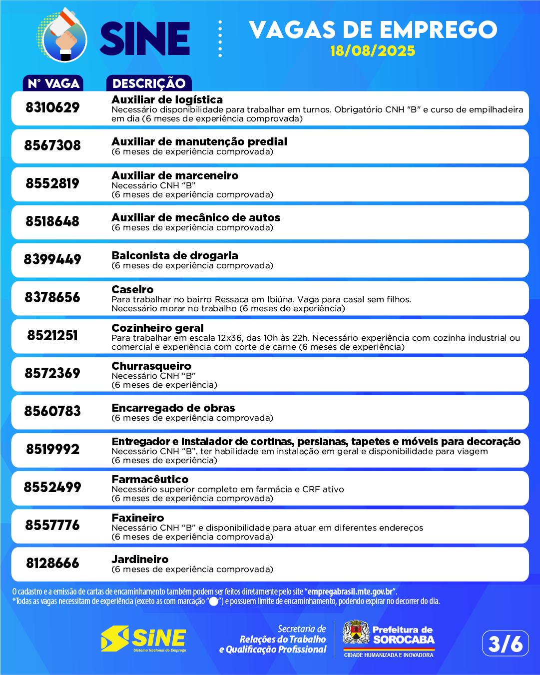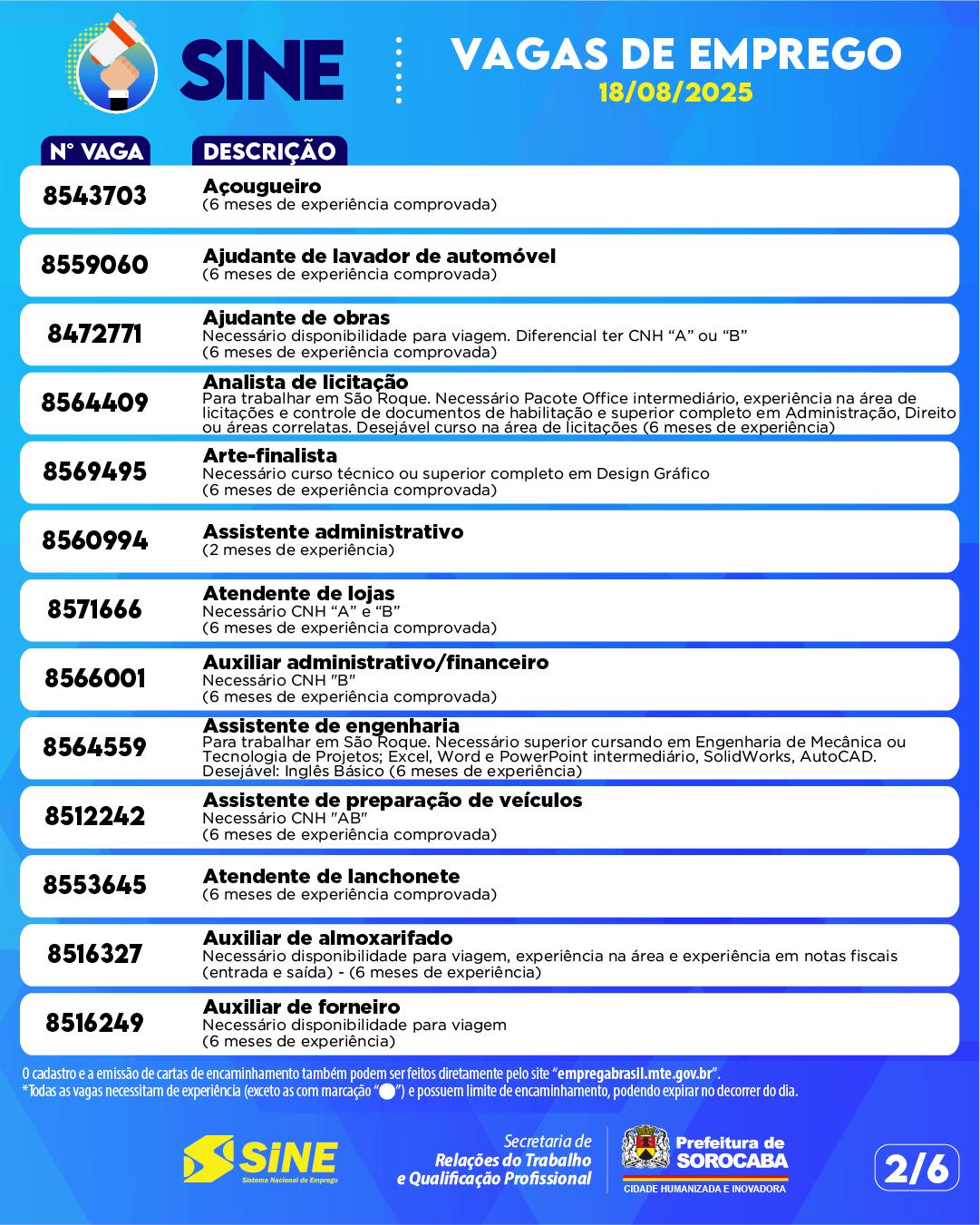 💼 As vagas disponíveis são atualizadas diariamente e podem ser consultadas também nos canais oficiais da Prefeitura.