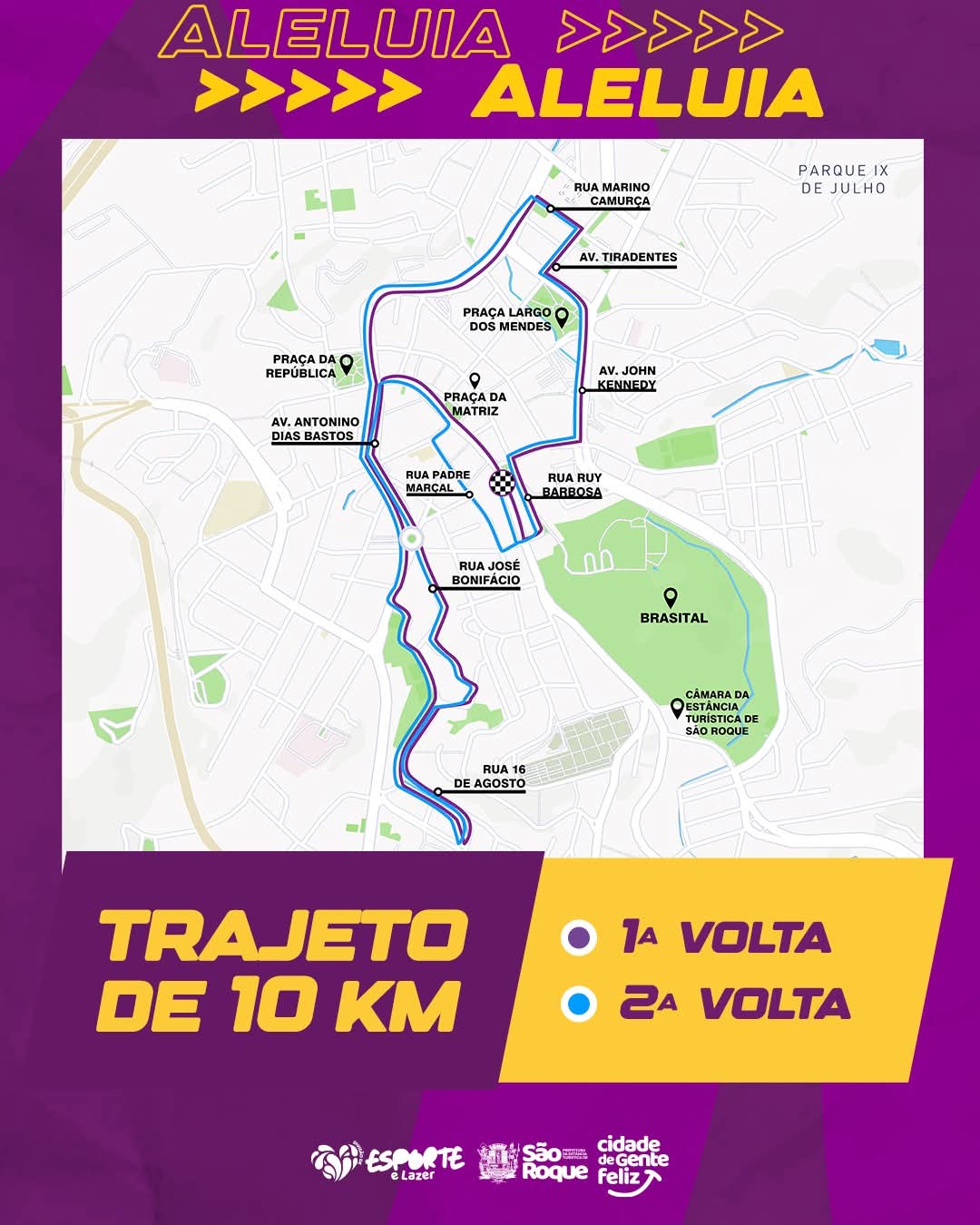 O evento contará com uma caminhada de 3 km, além das provas de 5 km e 10 km. A largada será na Praça da Matriz, com percurso pelas principais vias do centro, consolidando-se como o maior evento esportivo de São Roque.
