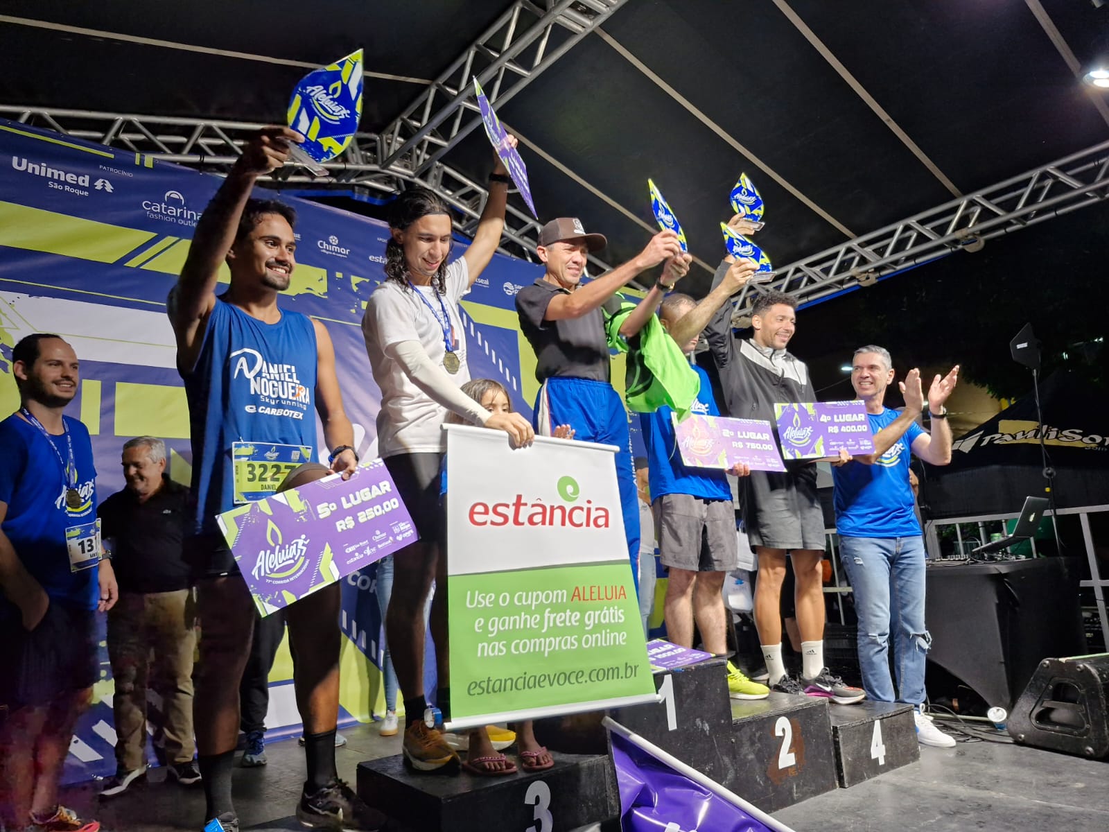 A Corrida de Aleluia e Aleluinha contou com o apoio da Outlet Catarina, Unimed Bestseal, Supermercado São Roque, Supermercado Estância, Supermercado Chimar, Supermercado Leve e Santa Areia.