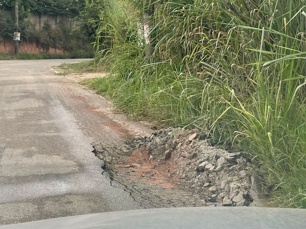 Buracos, mato alto e falta de iluminação na Rua Laura Maiello Kook preocupam moradores e motivam cobrança por ações imediatas da Prefeitura. Foto:. Divulgação