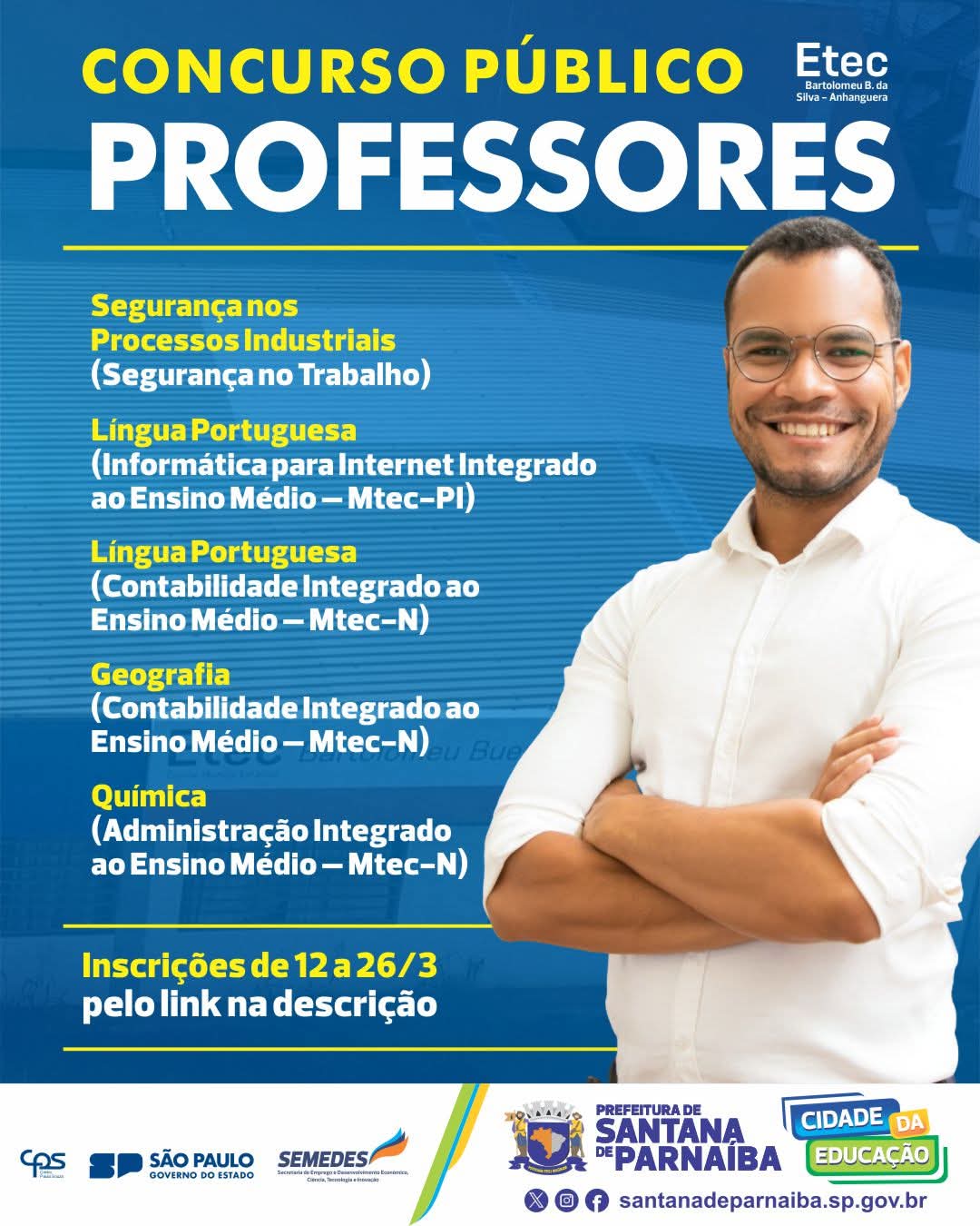 A Etec Bartolomeu Bueno da Silva está com inscrições abertas para concurso público destinado à contratação de professores.