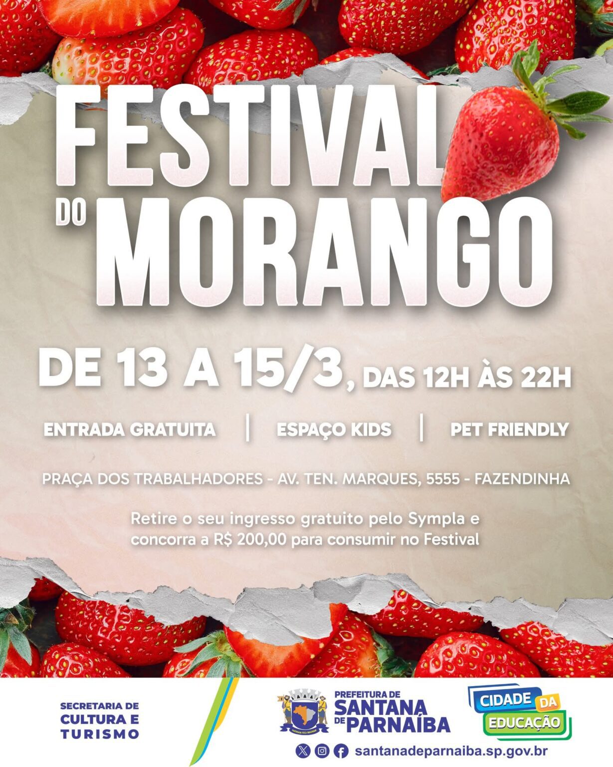 Santana de Parnaíba recebe, entre os dias 13 e 15 de março, o Festival do Morango, evento gastronômico que promete reunir moradores e visitantes em dias de muito sabor, música e entretenimento. A programação será realizada na Praça dos Trabalhadores, no bairro Fazendinha, com entrada gratuita.