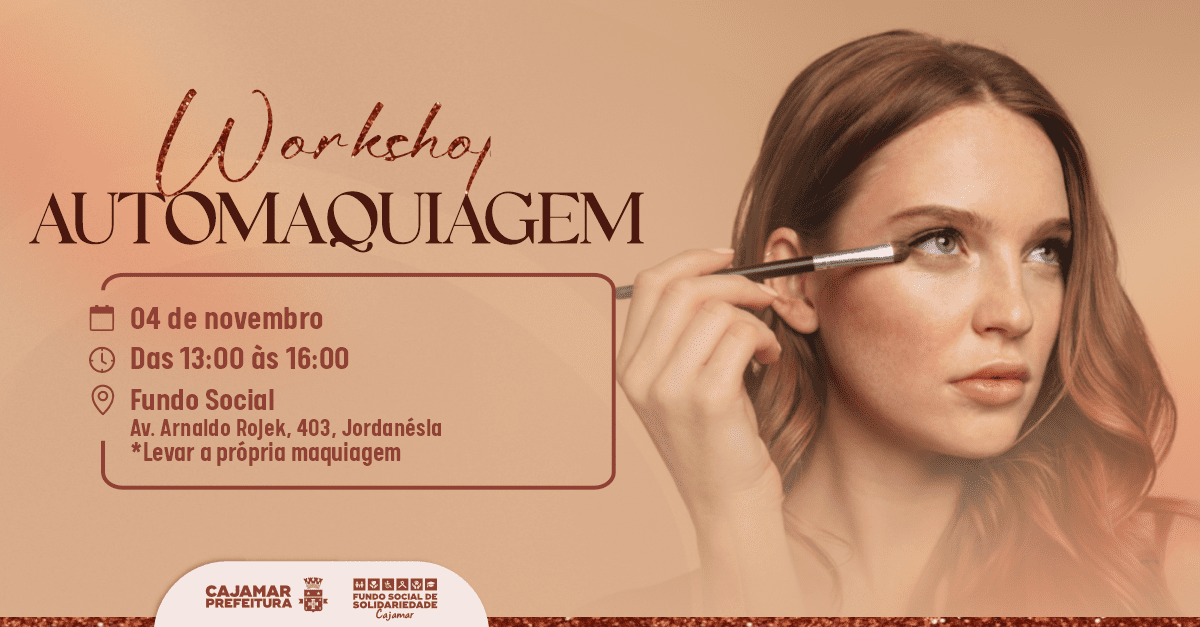 O Fundo Social de Solidariedade de Cajamar está com inscrições abertas para o curso de Automaquiagem, que será realizado no dia 04 de novembro, das 13h às 16h. A oficina será ministrada pela especialista Kassia Roberta, do salão Kassia Roberta Estética e Beleza, e promete ensinar técnicas práticas para realçar a beleza com os próprios produtos de maquiagem.