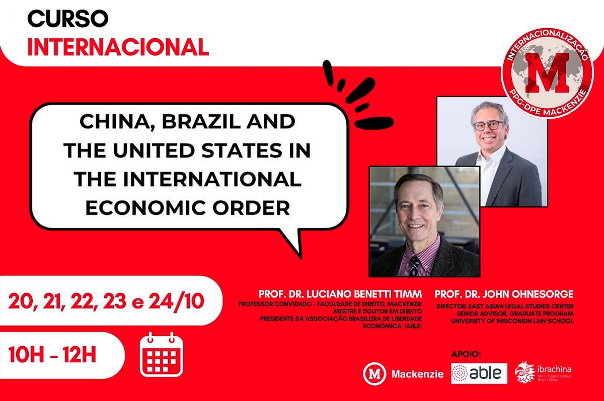 O Programa de Pós-Graduação em Direito Político e Econômico da Universidade Mackenzie oferece o curso “China, Brazil and the United States in the International Economic Order”.