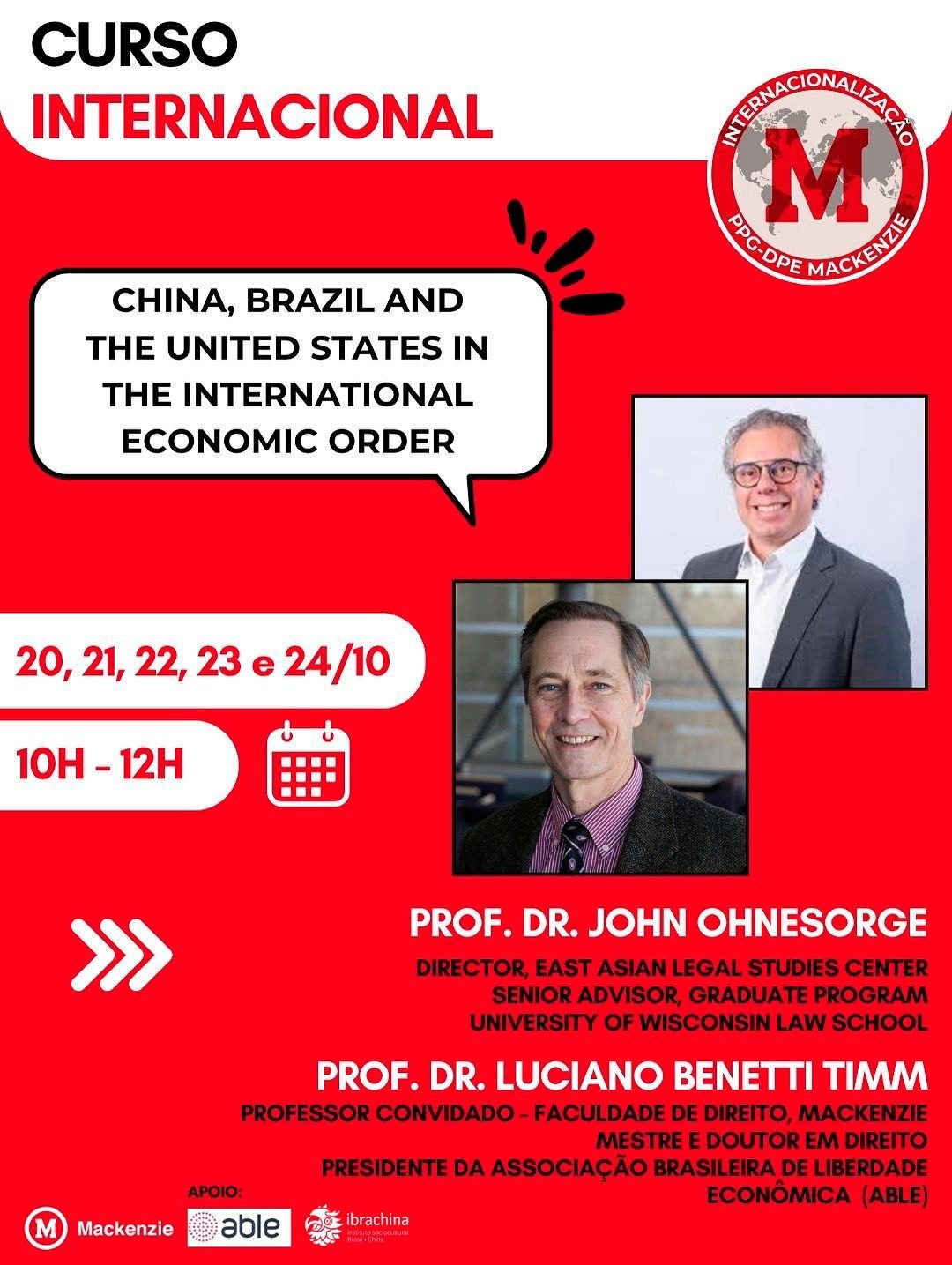 O Programa de Pós-Graduação em Direito Político e Econômico da Universidade Mackenzie oferece o curso “China, Brazil and the United States in the International Economic Order”.