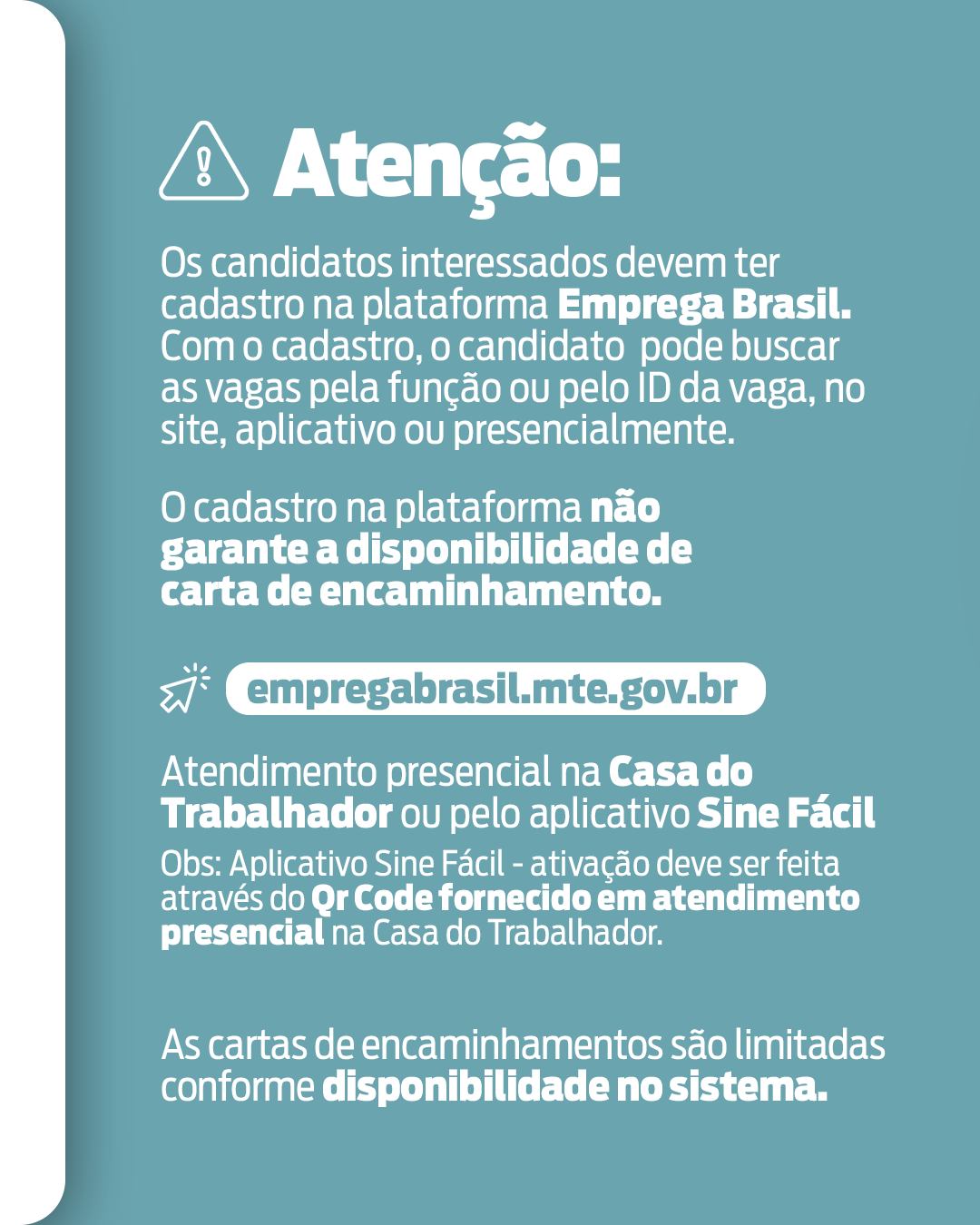 Importante: As vagas são limitadas e a disponibilidade pode ser alterada a qualquer momento, por isso, é recomendado que os candidatos realizem a inscrição o quanto antes.