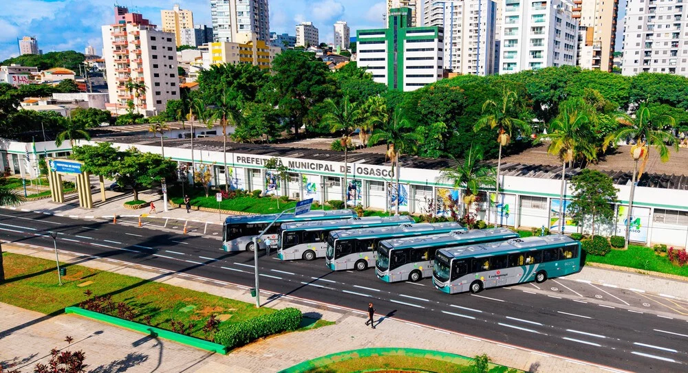 Ao reforçar o compromisso com o meio ambiente, a cidade entregou novos ônibus modernos e sustentáveis que vão circular em linhas municipais. Em frente à Prefeitura, foram entregues cinco ônibus com tecnologia EURO 6, que reduz em 95% a emissão de gases poluentes em motores movidos a Diesel. Já no Terminal de Ônibus Amador Aguiar, na Vila Yara, foram mais 12 coletivos elétricos.