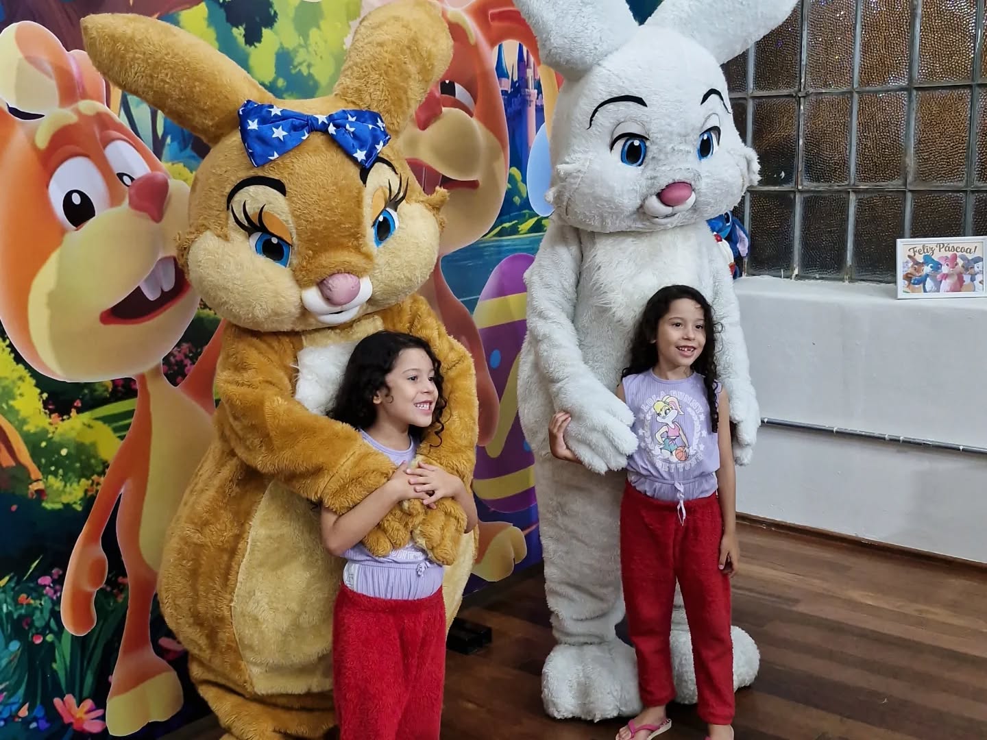 Crianças se encantam com a chegada dos Coelhinhos da Páscoa na Brasital, que recebeu decoração temática especial para o evento.