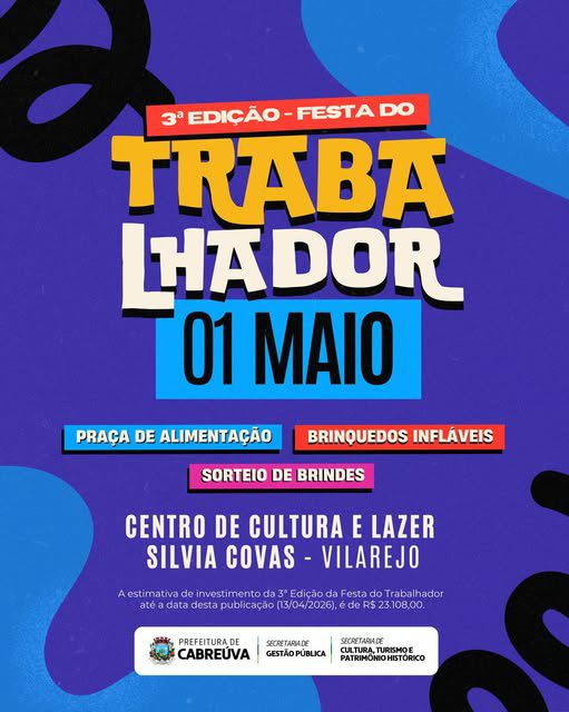 A Prefeitura de Cabreúva anunciou a realização da 3ª edição da Festa do Trabalhador, que acontecerá no dia 1º de maio, reunindo moradores para um momento de celebração, lazer e confraternização.