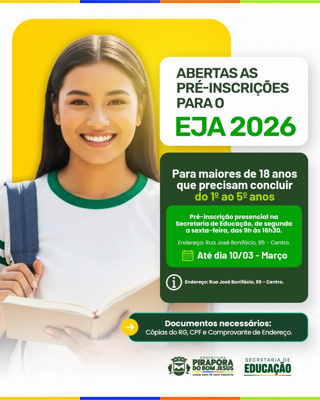 A Prefeitura reforça que a educação é ferramenta essencial de transformação social e incentivo à cidadania, convidando jovens e adultos a retomarem seus estudos e escreverem novos capítulos em suas histórias.