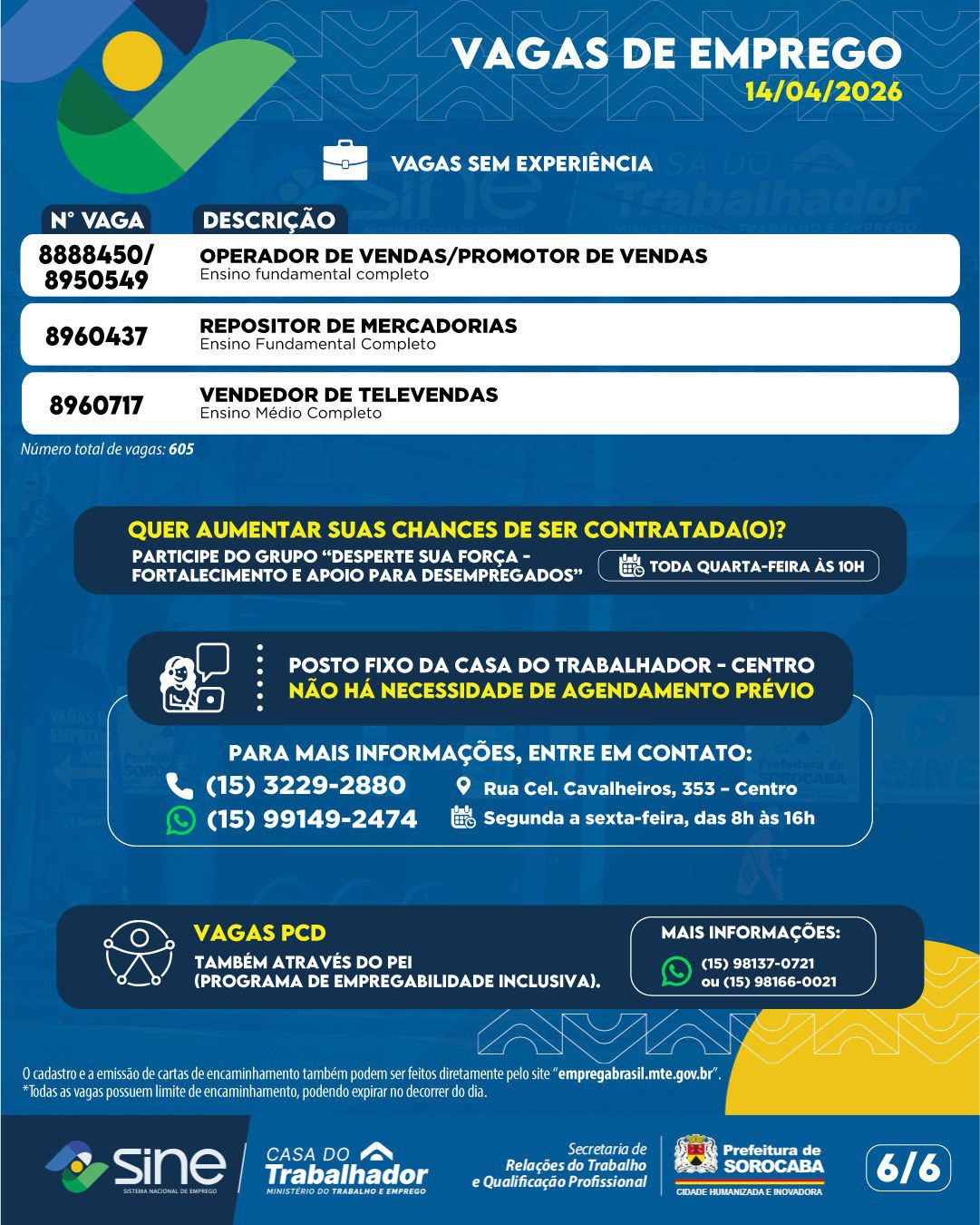 Os interessados também podem obter mais informações e esclarecer dúvidas por meio do WhatsApp do Sine Municipal: (15) 99149-2474.