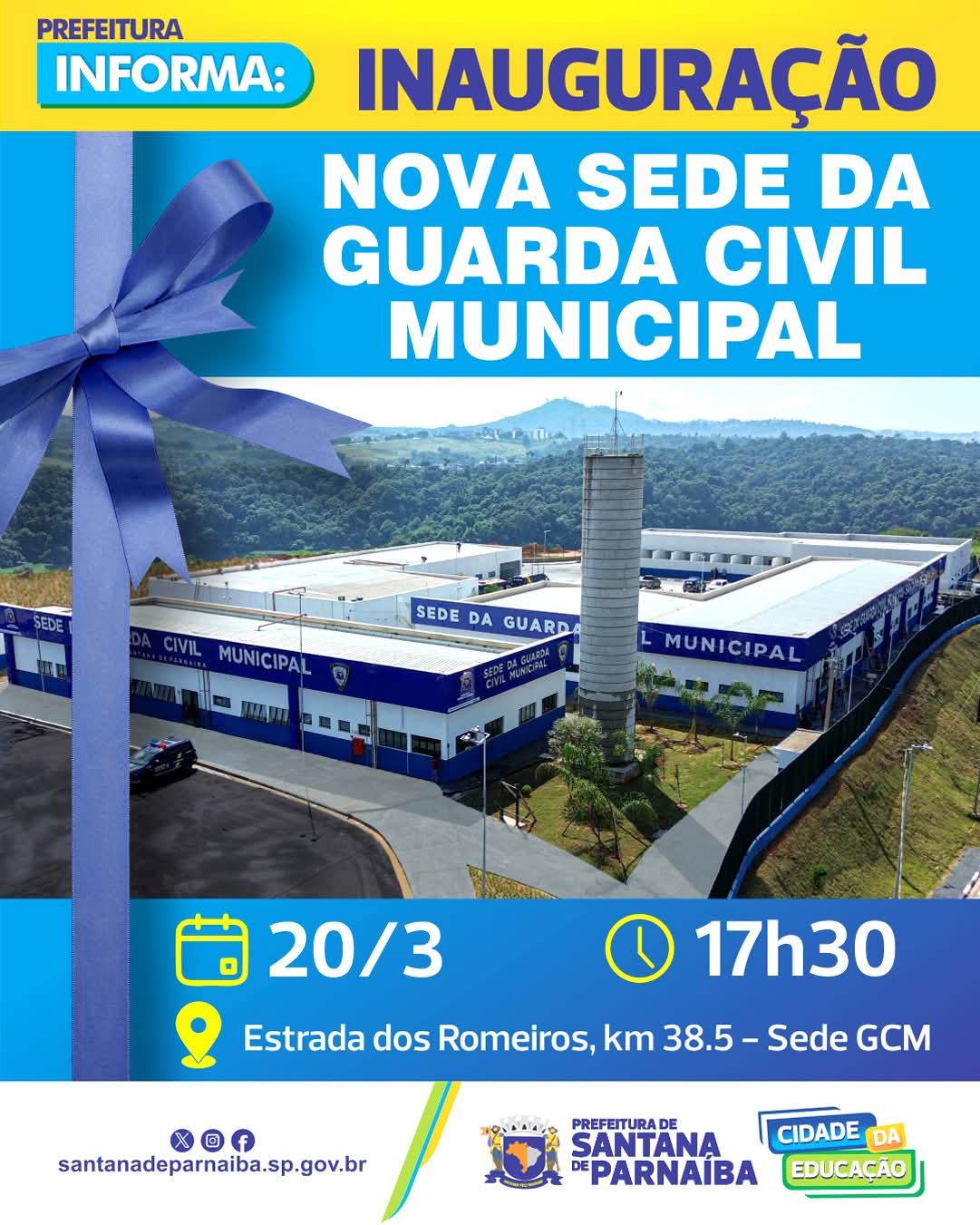 A Prefeitura de Santana de Parnaíba realiza, nesta quinta-feira (20), às 17h30, a inauguração da nova sede da Guarda Civil Municipal (GCM), localizada na Estrada dos Romeiros, km 38,5.