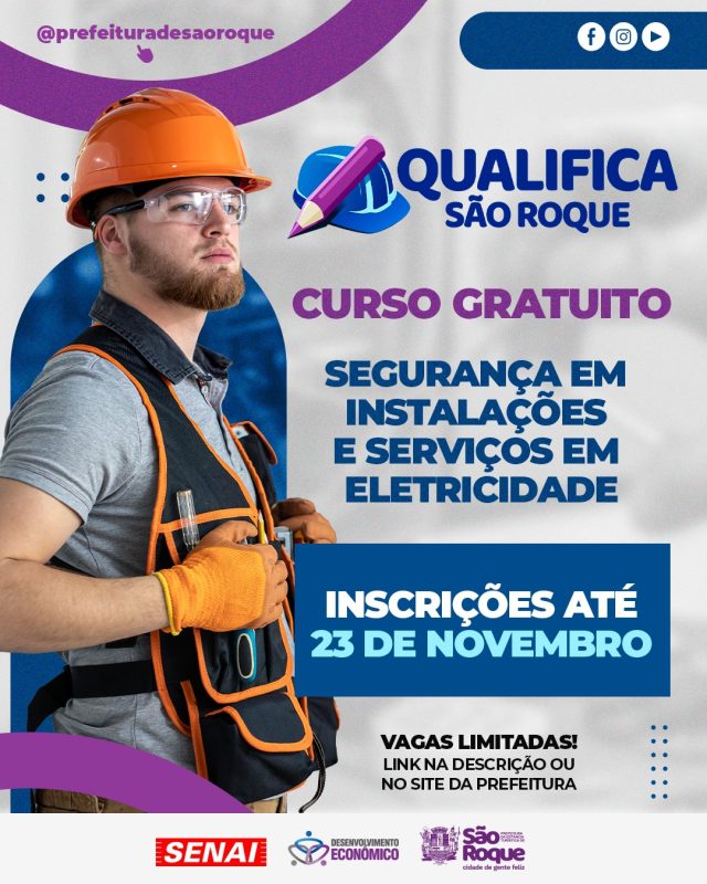 O Programa Qualifica São Roque, o maior programa de qualificação profissional da história do município, segue ampliando as oportunidades de capacitação e anuncia um novo curso gratuito: NR 10 – Segurança em Instalações e Serviços em Eletricidade, ministrado pelo SENAI.