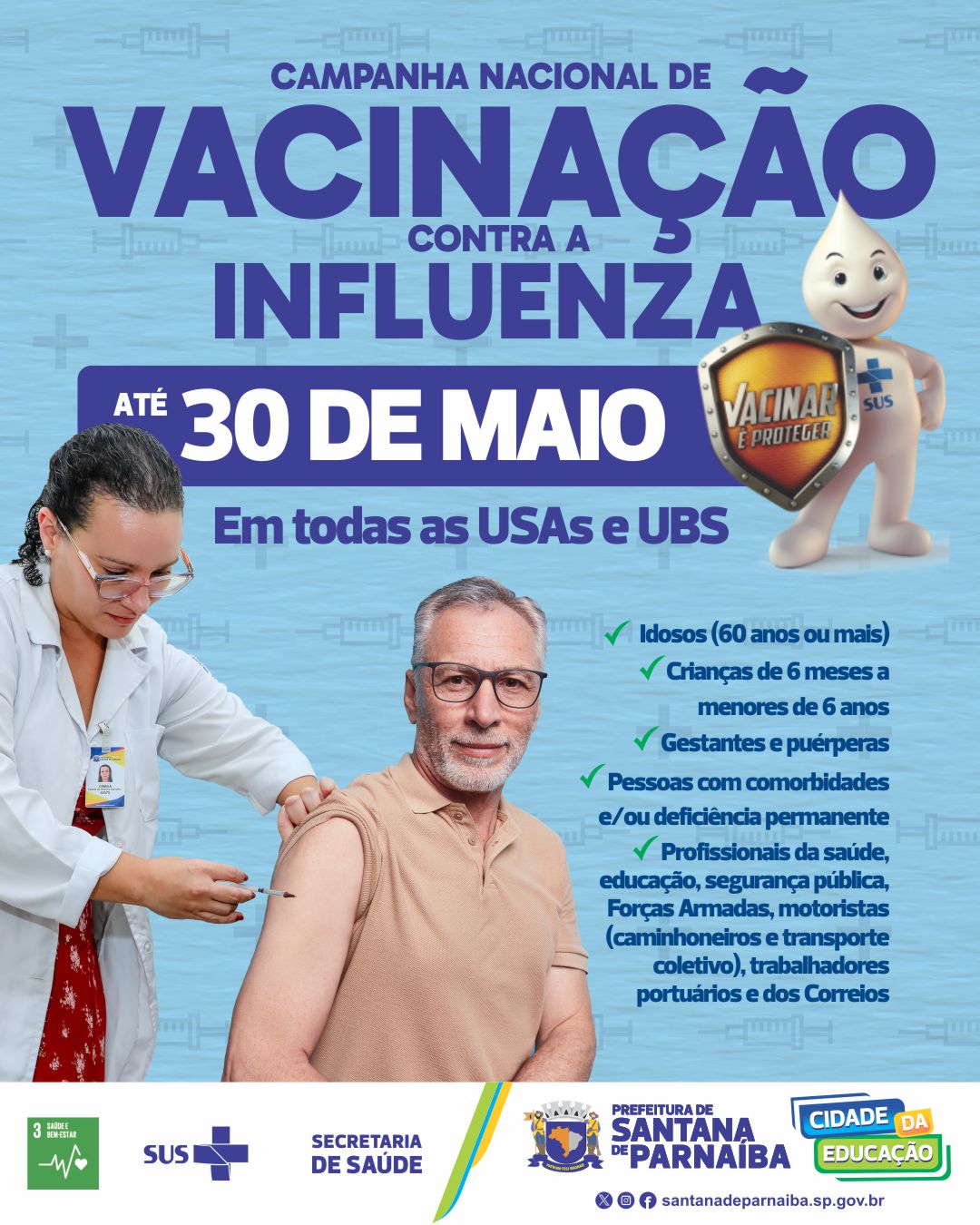 A Prefeitura de Santana de Parnaíba está participando da Campanha Nacional de Vacinação contra a Influenza, reforçando a importância da imunização como principal forma de prevenção contra complicações causadas pela gripe.