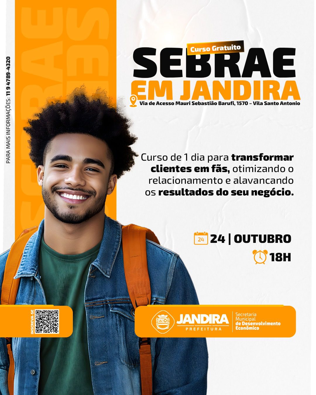 A Prefeitura de Jandira, em parceria com o SEBRAE, convida empreendedores e interessados a participarem do curso gratuito sobre estratégias práticas para fortalecer o relacionamento com clientes e aumentar os resultados dos negócios.