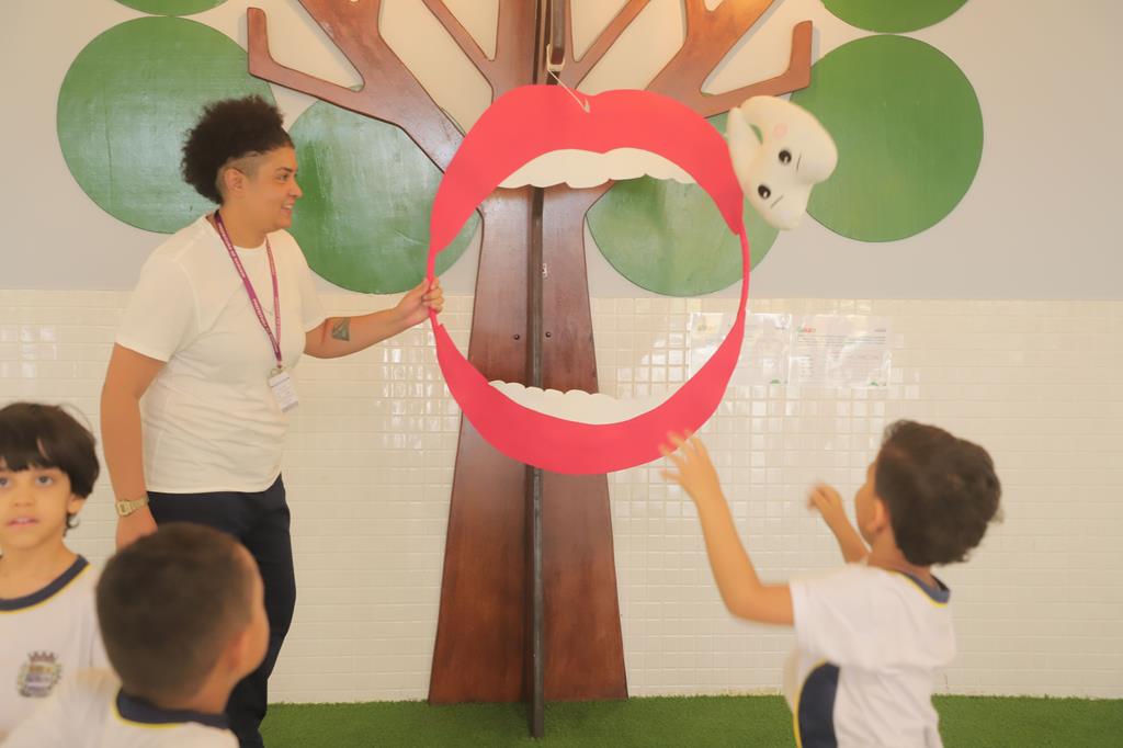 - A ação integra o projeto das Secretarias de Saúde e Educação que conscientiza sobre a importância da higiene bucal infantil.