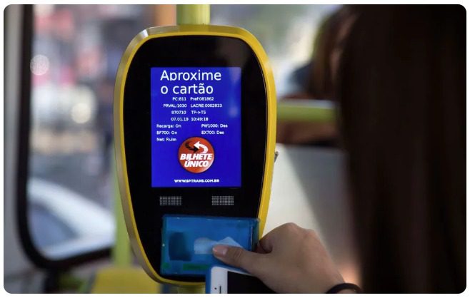 Passageira usa seu bilhete único em ônibus de São Paulo — Foto: Uriel Punk/Futura Press/Estadão Conteúdo